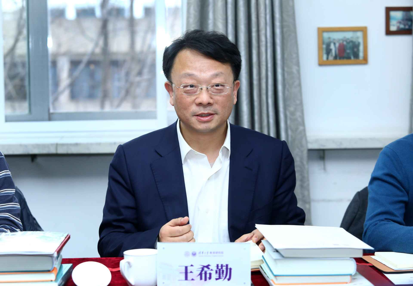 在听取工作汇报和教师代表发言后,王希勤首先对教研院教职员工的辛勤付出和对学校政策制定提供的理论支持表示感谢。王希勤指出,胸怀中华民族伟大复兴战略全局和世界百年未有之大变局是我们谋划工作的基本出发点,坚定教育自信在当前发展阶段具有重要意义。要建设中国特色哲学社会科学体系下的教育理论体系,并做好与国际的对话交流;要坚持正确的价值取向,坚持以人为本,努力追求人的全面发展和社会全面进步;要创新研究范式,做到融合创新,把握好个体与群体、认识与实践、正统与创新的辩证关系,直面学科和专业发生的巨大变化,统筹本科和研究生不同层次,研究教育的真问题,真解决问题。希望在未来的工作中,教研院更好地服务学校治理体系深化改革,更好地服务立德树人的根本任务,建设好中国特色、清华风格的教育学科。
