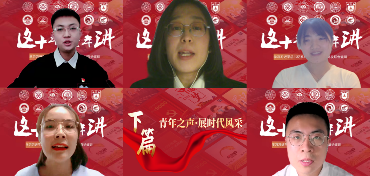 在微宣讲环节,华中科技大学喻文婷以习近平总书记的青年寄语为主线,号召同学们做新时代的有为青年。宁夏大学张竞元以宁夏回族自治区优秀共青团员龚续潜的事例为切入点,展示了宁夏青年学子的责任担当。吉林大学陈超认为,高校青年应学习理解推进国家治理体系与国家治理能力现代化的内涵本质,发挥自身在国家治理现代化中的先锋作用。中南大学吕尤讲述了在新时代推进脱贫攻坚与乡村振兴有效衔接,让脱贫基础更加稳固、成效更可持续的政策与实践。北京航空航天大学王志甜围绕中国的奥运故事,策励青年学子融入体育强国建设,以自身发展助推中国梦的实现。