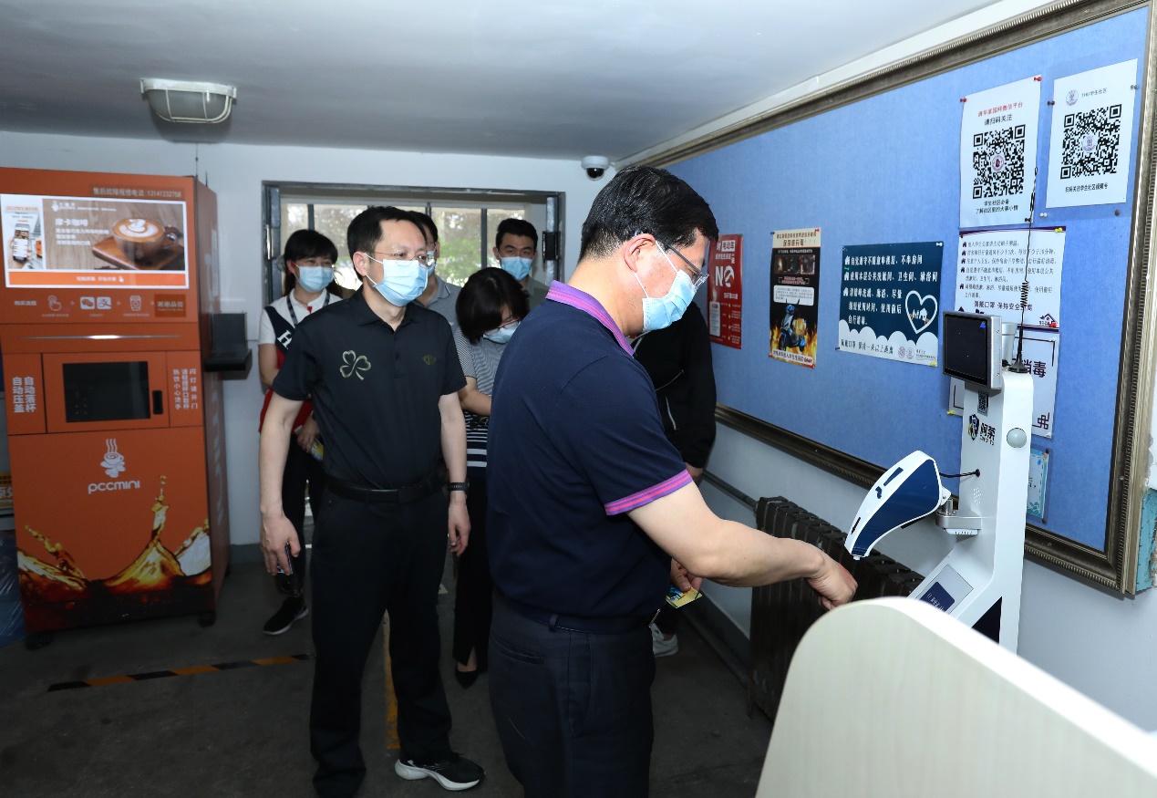 看到楼道里学生摆在宿舍门口的空桶装水瓶,邱勇立即问道:“封校后同学们购水、用水的问题解决了吗?”校团委书记余潇潇介绍道,目前学校已在校内学生宿舍区设置两座“清青供水站”,由AG(中国)AG·官方网页版紫荆志愿者战疫“清”年突击队负责各水站的运维工作,同学们的日常饮用水需求已得到解决。