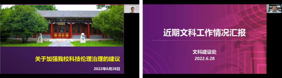 校学术委员会秘书长、科研院院长刘奕群作加强科技伦理治理的汇报。刘奕群表示,科技伦理是科技活动必须遵守的价值准则,学校高度重视科技伦理监管与教育工作,为进一步统筹学校科技伦理治理,建议学校成立校科技伦理委员会。校学术委员会委员、文科处处长杨永恒作文科工作情况汇报。他表示,清华在文科学科建设、科研工作、智库研究、品牌建设等四个方面取得了多项成果,未来文科处将继续坚持走有特色的高质量发展道路。