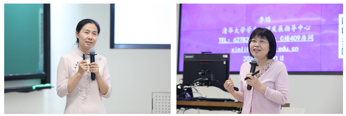 学生学习与发展指导中心主任耿睿与学生心理发展指导中心主任李焰对学生学习与发展支持、学生心理工作及危机干预作介绍。两位老师结合对清华学生的调研数据及案例,为教师们开展学生工作,师生交流互动提出了相应的工作策略及建议。