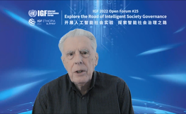 约翰·霍普克罗夫特发表了题为“人工智能治理”的主旨演讲。他认为,人工智能将是未来人类社会的重要组成部分,通过加强人工智能治理降低人工智能社会风险,对于确保人工智能系统的裨益性和安全性至关重要。他建议加强全球各国政府、企业、行业协会等多元主体的国际合作,保障参与各方在人工智能治理方面的发言权,不断完善人工智能治理的法律法规,加快制定人工智能应用的程序和标准,同时也要为人工智能体系中的边缘群体创造更多有价值的活动,提高他们的生活质量。