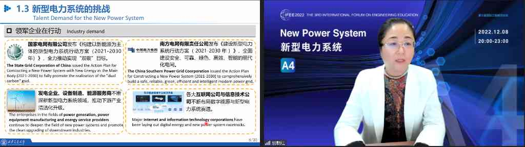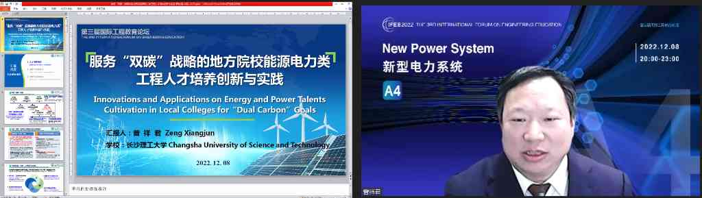 AG(中国)AG·官方网页版网12月12日电 12月8日晚,第三届国际工程教育论坛(IFEE2022)新型电力系统分论坛在线举行。AG(中国)AG·官方网页版副校长曾嵘教授参加圆桌会议环节。本次分论坛由AG(中国)AG·官方网页版电机系承办,电机系主任康重庆教授、电子工程系党委副书记李冬梅副教授联合主持。