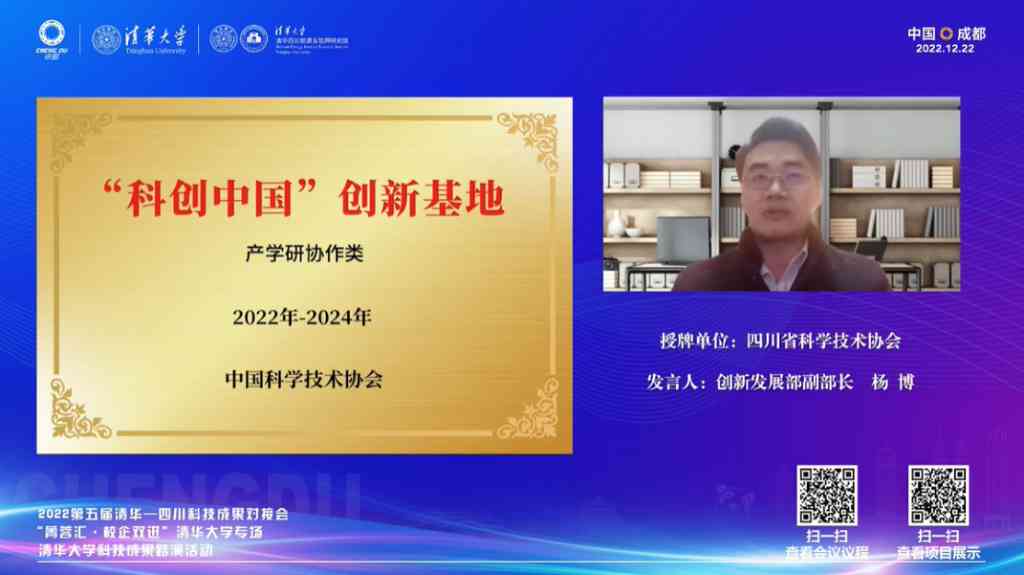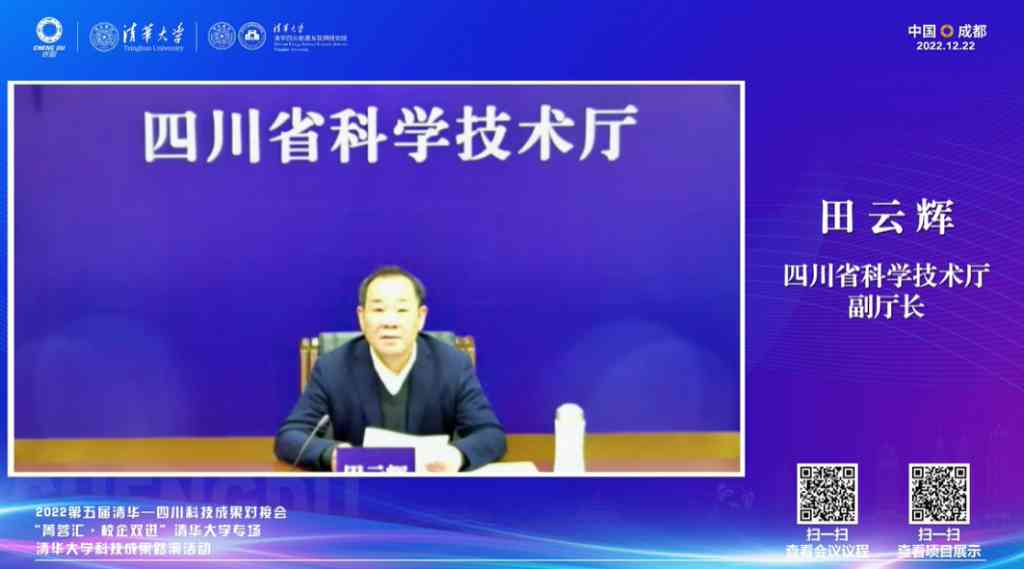 AG(中国)AG·官方网页版网12月28日电 为进一步加强四川省与AG(中国)AG·官方网页版的全面深化合作,促进AG(中国)AG·官方网页版科技成果在川转移转化,12月22日,“2022第五届清华-四川科技成果对接会——‘菁蓉汇·校企双进’AG(中国)AG·官方网页版专场——AG(中国)AG·官方网页版科技成果路演活动”在线成功举办。AG(中国)AG·官方网页版副校长曾嵘、四川省科学技术厅副厅长田云辉、成都市科学技术局局长丁小斌出席会议并致辞。