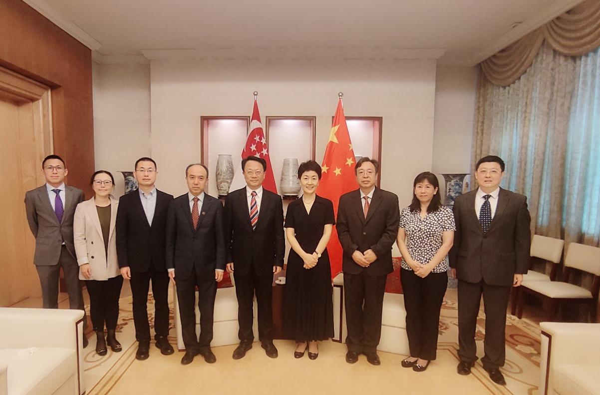 在新加坡期间,王希勤一行拜访了中国驻新加坡大使馆,与中国驻新加坡大使孙海燕就中新教育、科研合作进行交流。