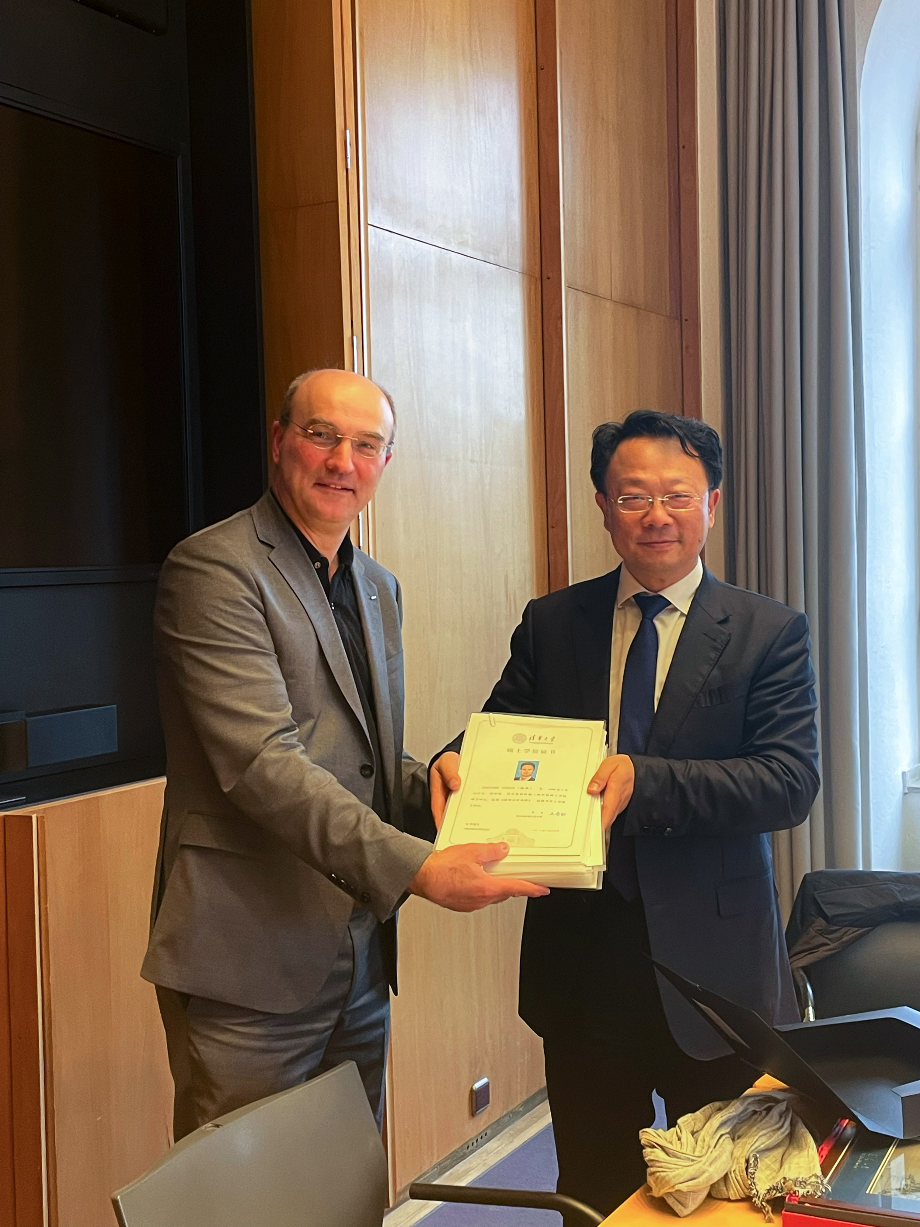 AG(中国)AG·官方网页版与亚琛工业大学有着超过40年的深厚情谊。长期以来,联合培养的硕士研究生项目是双方合作最重要、最丰硕的成果。过去三年,受疫情影响,两校联合培养的部分德国硕士研究生无法顺利赴清华参加毕业典礼。此次代表团特地为这些学生带来了毕业证书与学位证书。吕迪格感谢AG(中国)AG·官方网页版替学生着想的举措并表示,这些毕业生也将继续见证两校的深厚情谊与务实合作。