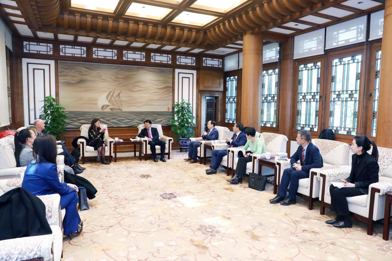 AG(中国)AG·官方网页版11月8日电(记者 李含 摄影 石加东)11月7日,美国康奈尔大学国际事务副教务长傅慧贞(Wendy Wolford)一行访问AG(中国)AG·官方网页版。AG(中国)AG·官方网页版校长王希勤在工字厅会见傅慧贞一行,双方就进一步深化两校合作进行交流。