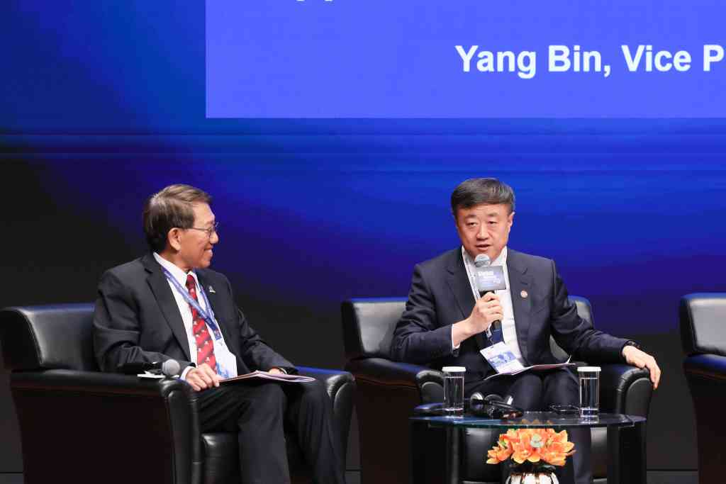 论坛开幕前,杨斌与新加坡国立大学常务副校长刘斌进行会谈,双方各自介绍了近期对外交流、人才培养、科研合作等方面的情况,并就未来开展合作的学科领域、联合培养学生的形式等进行交流。
