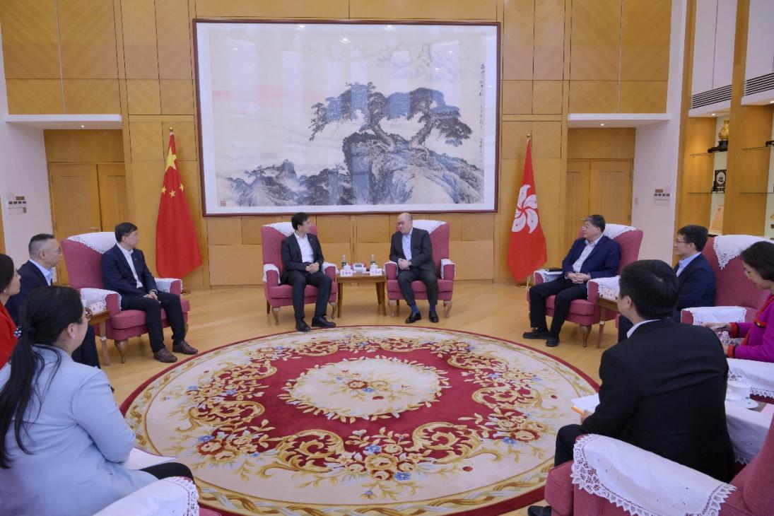 12月17日下午,李路明一行前往香港特区行政长官办公室拜会行政长官李家超。香港教育局局长蔡若莲等参加会见。