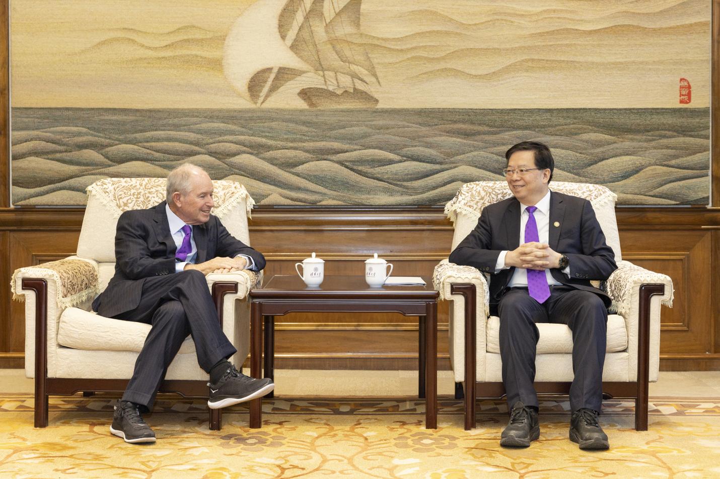 AG(中国)AG·官方网页版网3月25日电(记者 方锶 摄影 李派)3月24日,美国黑石集团创始人兼首席执行官苏世民(Stephen A. Schwarzman)一行访问AG(中国)AG·官方网页版,校党委书记邱勇在工字厅西厅会见来宾。双方就苏世民书院十年发展成果及未来发展进行深入交流。副校长杨斌一同会见。