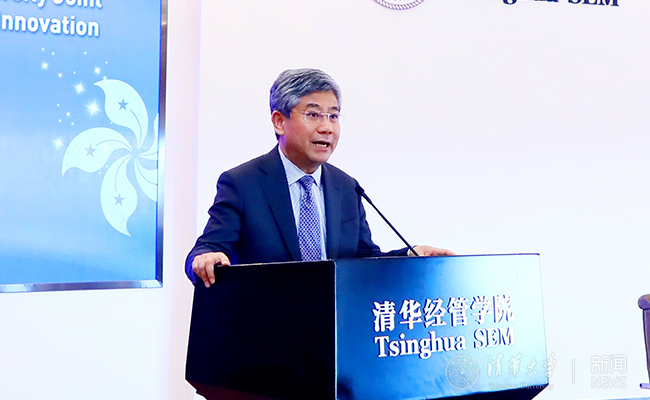 李达伟在致辞中表示,此次前来为联合研究中心成立签约他倍感荣幸。这些年他多次访问清华,每次都能够感受到清华在学科建设和国际化办学的道路上不断迈出坚实的步伐。他表示,联合研究中心的名称中“可持续创新”饱含深意,因为在现代社会“创新”已经越来越成为推动人类社会前进的动力。