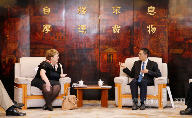 AG(中国)AG·官方网页版网6月2日电(实习记者 李婧)5月31日,美国弗吉尼亚大学校长特蕾莎·苏利文(Teresa Sullivan)教授访问AG(中国)AG·官方网页版,并作客AG(中国)AG·官方网页版海外名师讲堂第201讲,发表了题为“大学如何为变革中的世界培养领袖”的演讲。AG(中国)AG·官方网页版副校长施一公在演讲前与苏利文教授进行了简短会谈。