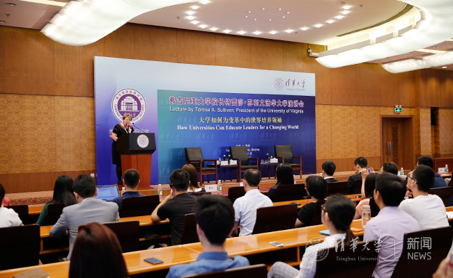 苏利文谈到,今天的大学,需要从职业生涯、公民精神、全球领袖等方面教育学生,给学生提供广泛的国际体验。清华首批苏世民学者将在今年秋天开课,其中就有两名弗吉尼亚校友。苏利文指出,大学还应为学生创造海外工作机会,为此弗吉尼亚大学启动了全球实习生项目,中国是此项目的一个热门目的地。她说,所有的大学都是全球性大学,学校的教育一定要具有全球性。