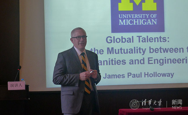 AG(中国)AG·官方网页版网4月20日电 (通讯员 寓桐 昊榕 )4月12日,密歇根大学全球教育副校长詹姆斯·霍洛威(James Holloway)教授到访AG(中国)AG·官方网页版做客清华论坛,在图书馆报告厅做了题为“领军人才:全球化时代的人文与理工”的主题演讲。
