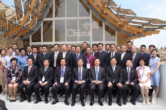 出席仪式领导与嘉宾在中国馆前合影。