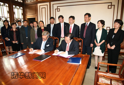 图为王殿军(前右)和蒙特格瑞分别代表各自学校签署合作协议。