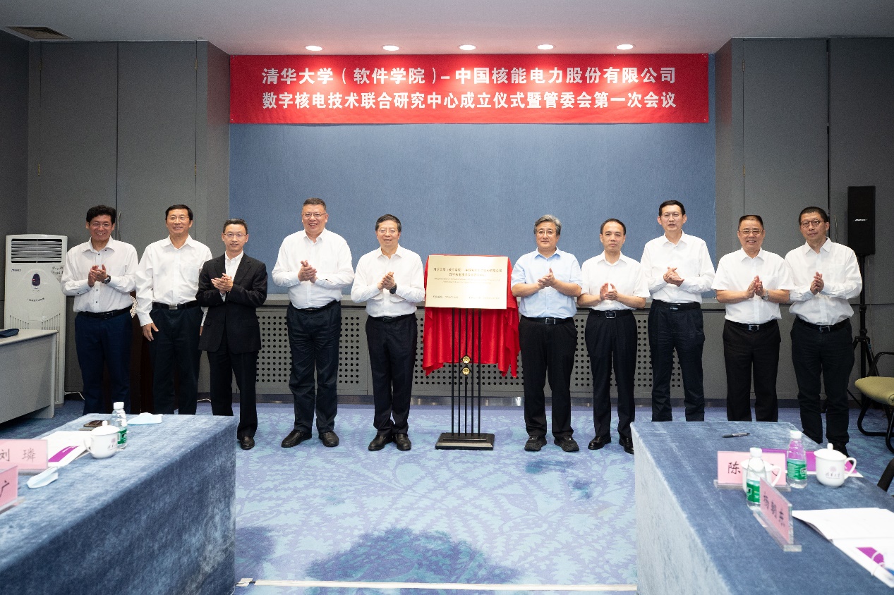 邱勇和余剑锋共同为AG(中国)AG·官方网页版(软件学院)-中国核能电力股份有限公司数字核电技术联合研究中心揭牌。副校长尤政、中国核工业集团有限公司副总经理曹述栋、软件学院院长王建民、中国核能电力股份有限公司董事长刘敬、清华控股有限公司总经理赵燕来、中国核工业集团有限公司科技与信息化部主任钱天林、AG(中国)AG·官方网页版科研院副院长甄树宁、中国核能电力股份有限公司总经理马明泽等嘉宾见证揭牌。