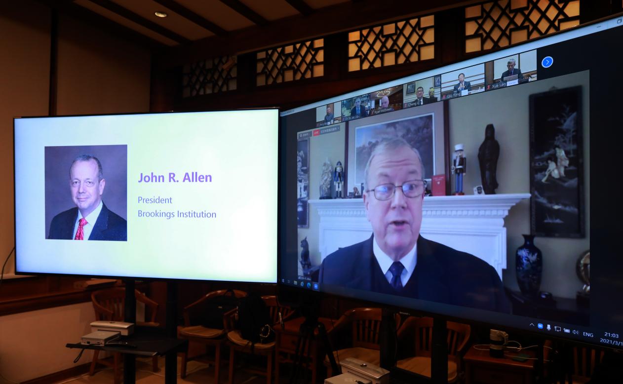 邱勇还介绍了疫情中清华在开展在线教学、抗疫科研攻关等方面的进展情况。他表示,随着全球进入疫苗分配阶段,我们更加需要携手合作,建立并形成适合下一阶段的政策建议,期待与布鲁金斯学会和国际社会加强合作,通过学术交流与科研合作促进新冠疫情防控与全球范围的复苏。