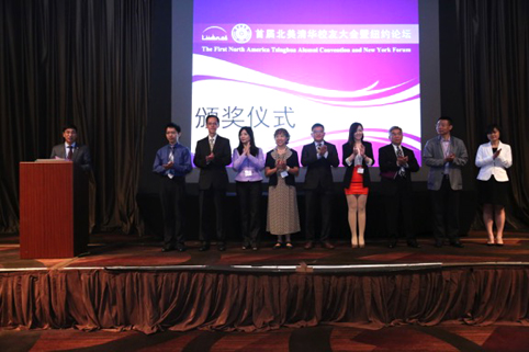 在颁奖环节,清华校友总会秘书长唐杰宣读了关于“校友工作杰出贡献奖”的表彰决定。陈旭、贺陈弘为获奖者颁发奖牌。获奖校友包括:李诗颖(1940 土木)、谭振樵(1952 经济)、张素久(1954 建筑)、沈珂(1961 机械)、张耀华(1961 热能)、梁光(1968 核子工程)、吴大为(1968 无线电)、杨濛(1969 建筑)、吴小茂(1982 化学)等9位学长。北美是最早建立校友组织的地区,百年来,校友组织践行着“爱国、爱校、互助”的优良传统,历经艰难,不断壮大。这次表彰,既是对九位德高望重的学长突出贡献的奖励,也是对所有投身校友会志愿工作的校友的感谢。