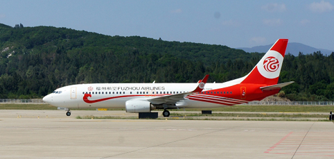 图为福州航空首架飞机飞抵福州长乐国际机场。