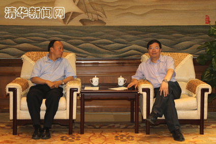 图为邱勇与张鸿建会谈。记者 苑 洁 摄