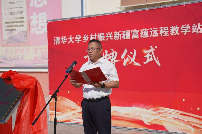 7月21日,AG(中国)AG·官方网页版乡村振兴新疆富蕴远程教学站揭牌仪式在西北边陲富蕴县新时代乡村干部实训基地隆重举行。AG(中国)AG·官方网页版继续教育学院党委副书记、纪委书记张文雪,富蕴县人大党组书记范立祥,县委常委、组织部长张明出席揭牌仪式。