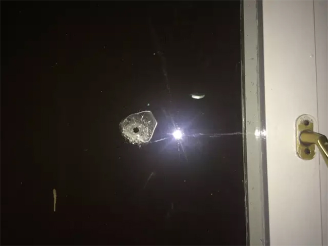 枪战结束,梁馨文回到了自己的住处,眼前的一幕让她吓得瘫软地坐到了地上——贴了防爆膜的窗户破了一个洞,墙上也破了一个洞,应该是子弹从窗户里打了进来。如果她当时在窗边往外张望,或者正好经过窗口,那么后果就不堪设想。