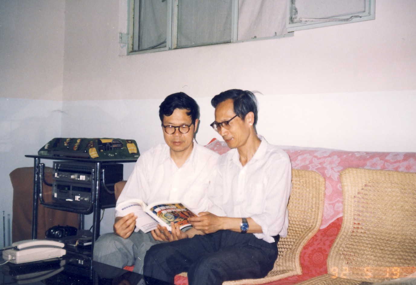 张钹(右)与张铃讨论人工智能学术问题。(1992年)