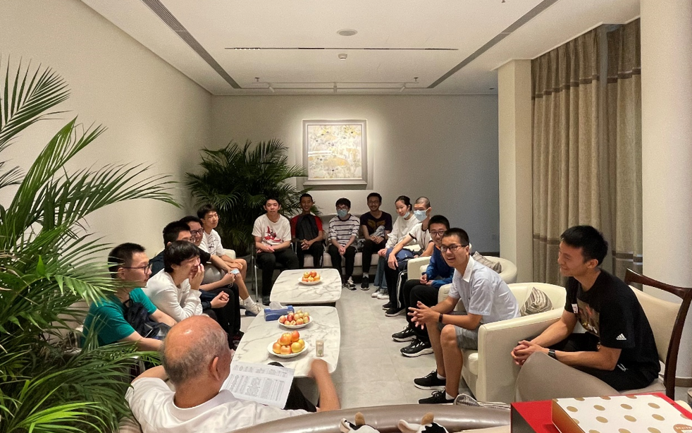 而在日常生活中,这位严格的学术导师又显出亲切随和的一面来。他记住了不少求真书院学生的名字,几乎每周都会举办座谈,或借午餐、晚餐的时机与学生交流,关心他们的生活与学习进展。去年暑期,他分批邀请因疫情滞留在校的学生到家中吃饭;10月,他来到书院杯篮球赛决赛现场,为队员加油助威。求真书院组织中国历史实践游学,他亲自带队。他们去西安参观兵马俑,当晚,丘成桐在微信群里与学生讨论《史记》相关章节。