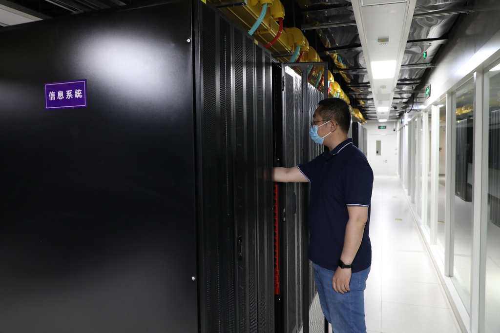 刘乃嘉在机房进行调试