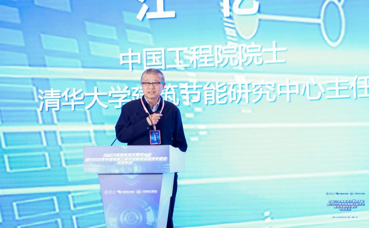 江亿院士作题为“充分挖掘利用终端资源 解决风电光电消纳难题”的主旨报告。他对电源结构变化所带来的新问题进行分析,提出利用私家车、建筑等终端承担调峰任务,采用动态碳排放责任因子的电网调节方法。