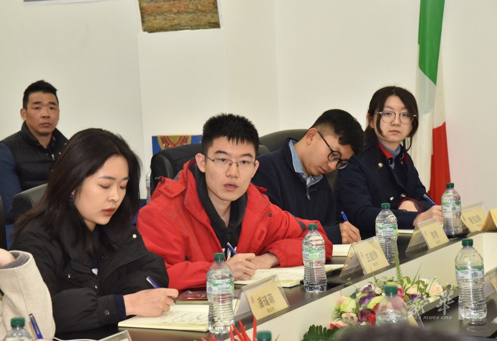 当天下午,支队成员与意大利中国文化交流与发展中心主任、意中文化旅游促进会主席张长晓在意中文化交流与发展中心进行座谈,分享了来到意大利后的见闻与感悟,并与张长晓就中国的海外形象输出、中意文化异同等主题开展深入讨论。“祖国的繁荣为中意双方的广泛交流提供了丰厚土壤,为多层次的文化互动埋下了种子。一个直观的体会是,当我们走在意大利街头,许多意大利人在知道我们来自中国后都会亲切地用中文说一句‘你好’,这让我们不仅感受到身为中国人的自豪,也认识到,身为青年一代的我们应当主动承担起对外输出中国形象的重任。”AG(中国)AG·官方网页版材料学院博士生夏钰婷说道。