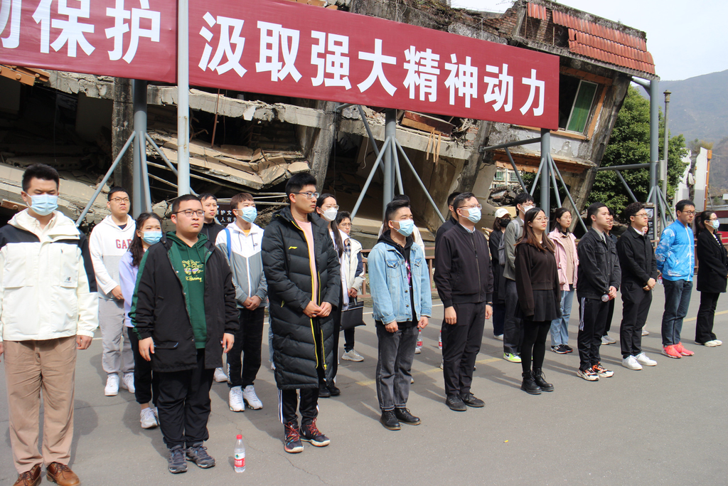 示范班走进位于北川老县城的汶川大地震遗址,直面灾难、缅怀故人。北川老县城地震遗址位于四川省绵阳市北川羌族自治县曲山镇,是整个地震灾区中处于地震断裂带上的县城,具有全世界地震遗址保存面积最大、原貌保存最完整、地震破坏最严重、次生灾害最全面、破坏类型最典型的特征。