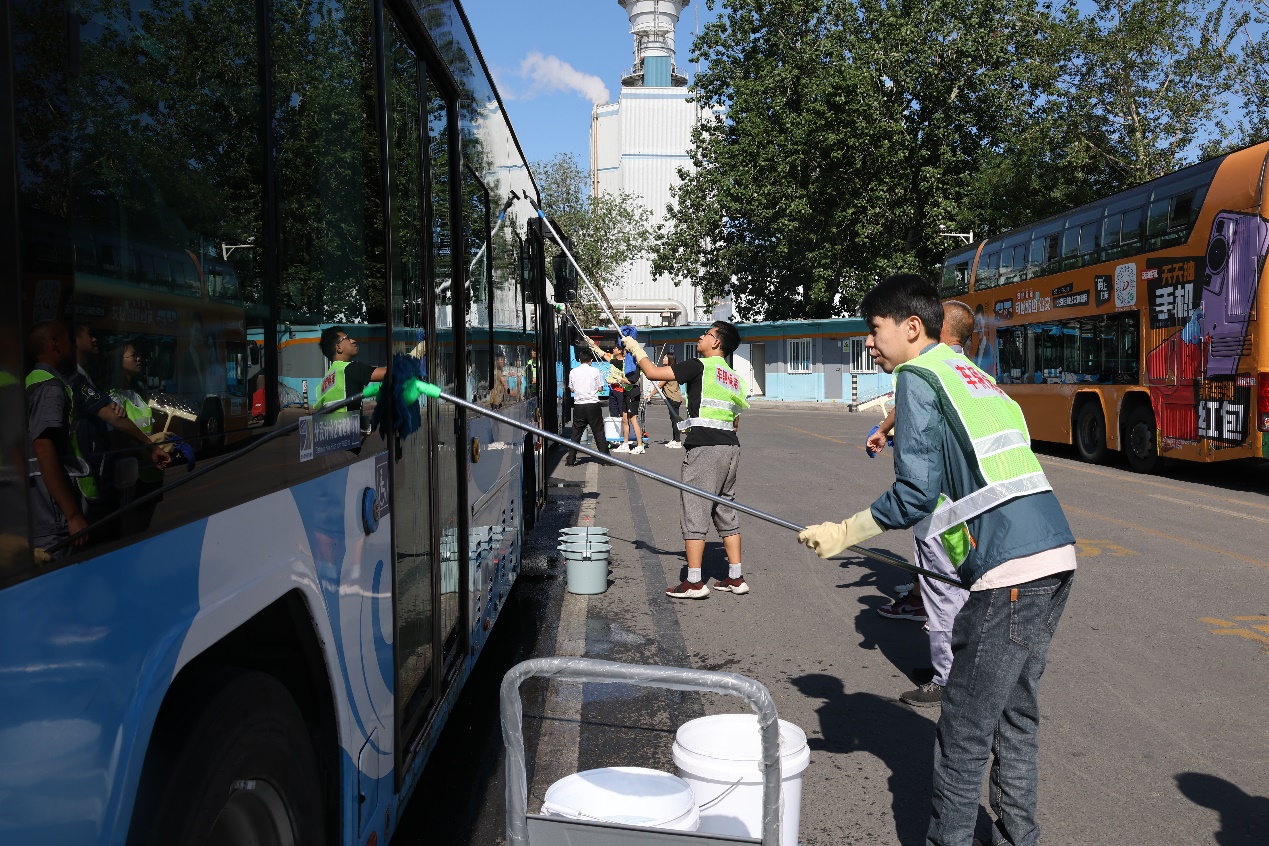 当天上午,同学们早早来到基地,跟随工作人员进行车辆清洁工作。