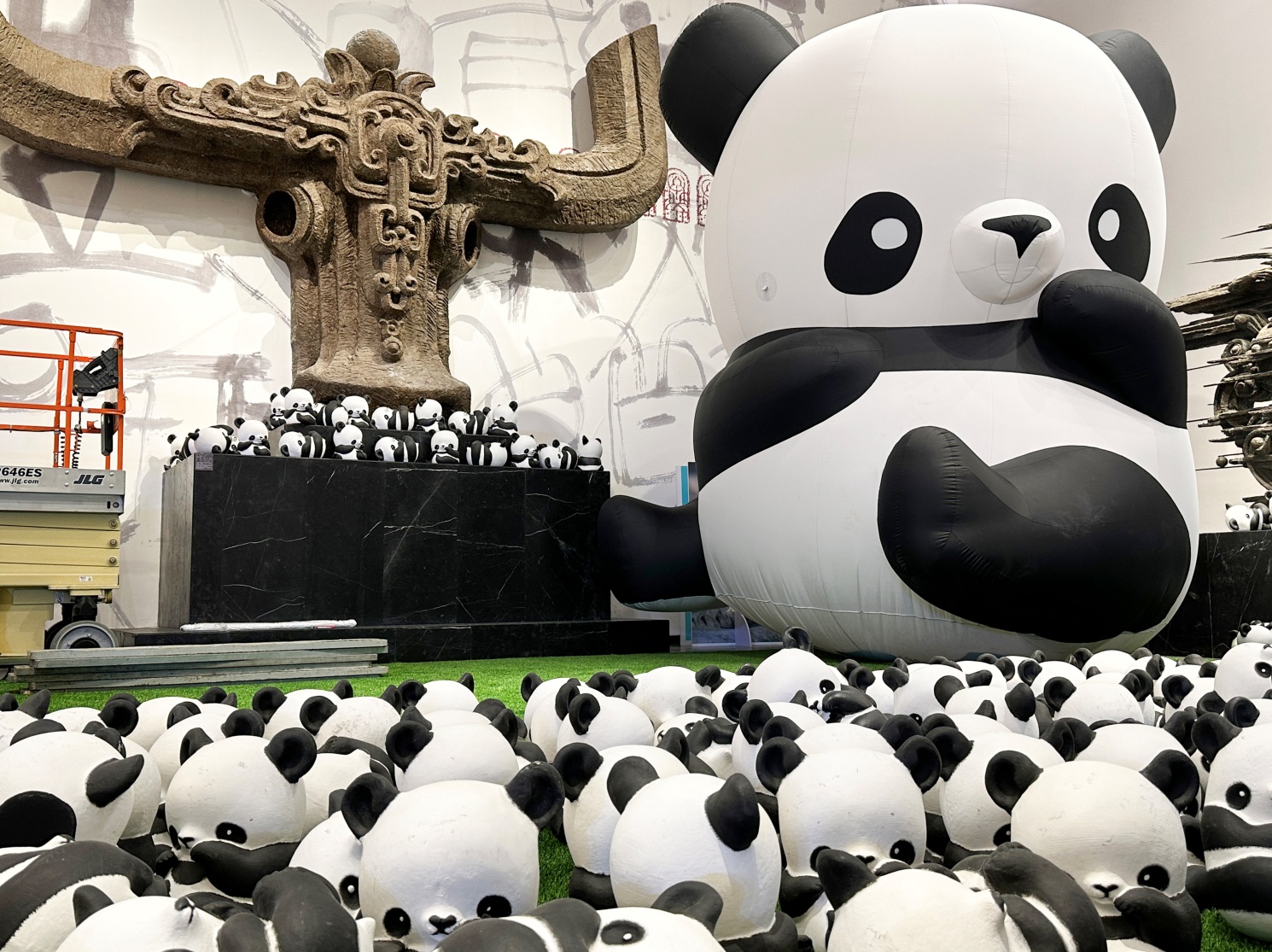 2019年,世界自然基金会(WWF)与深圳市一个地球自然基金会共同以韩美林设计授权的熊猫形象,制作了1864只环保纸质大熊猫,并开启了“1864大熊猫巡展”,希望公众像关爱大熊猫那样关爱濒危野生物种,认识它们的生存环境,从而了解对生物的多样性保护的意义。值此北京韩美林艺术馆十五周年之际,1864只熊猫宝宝回到北京韩美林艺术馆,与馆内韩美林艺术作品相映成趣,体现韩美林“人与自然和谐相处,艺术与自然水乳交融”的世界观与艺术观。