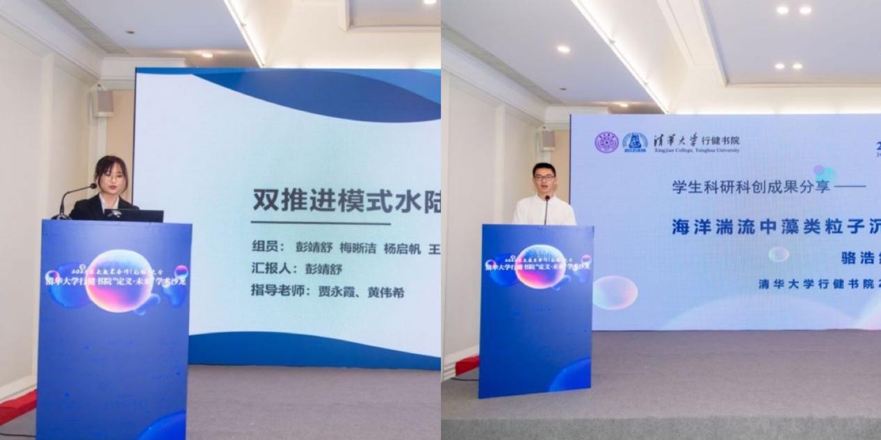 沙龙下半场以“创新与实践”为主题。学生代表彭靖舒、骆浩然先后分享了他们的科研科创项目“双推进模式水陆两栖仿生机器鱼”和“海洋湍流中藻类粒子沉降及团聚规律研究”。沙龙期间,还举行了行健书院第三届“五行杯”科研科创挑战赛颁奖仪式。