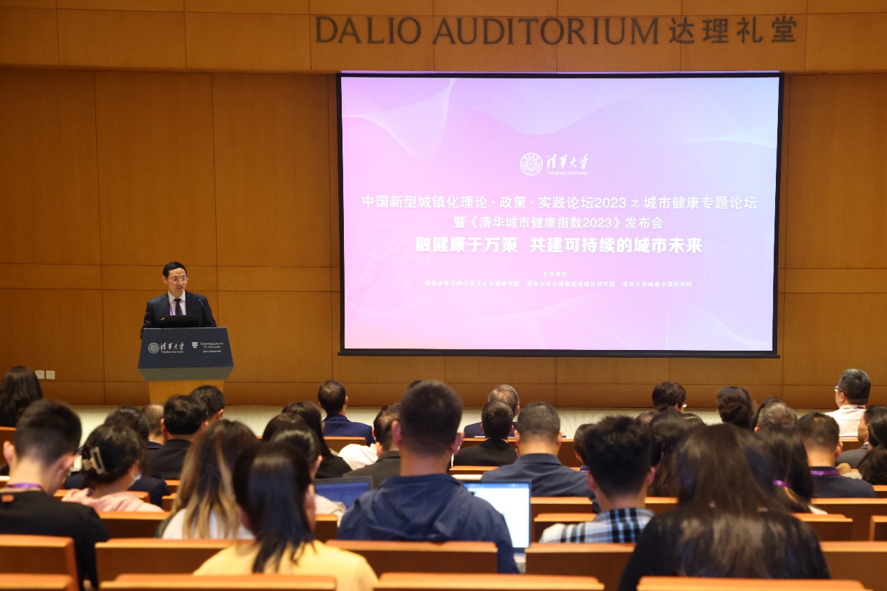 上海市卫健委健康促进处副处长崔元起,杭州市健康城市指导中心主任王建勋,成都市卫健委机关党委书记、成都市爱国卫生运动委员会办公室主任李志春作为《清华城市健康指数2023》排名中的引领级城市代表,介绍了三地在城市健康发展方面取得的经验成绩和典型案例。生态环境部法规与标准司一级调研员宛悦,成都市生态环境局党组成员、副局长文雁,国家发展改革委社会发展研究所社会治理室主任、研究员李璐,中山大学中山眼科中心副研究员林铎儒等四位专家围绕环境健康、公共服务、疾病防控、城市治理等城市健康核心要素展开专题分享。