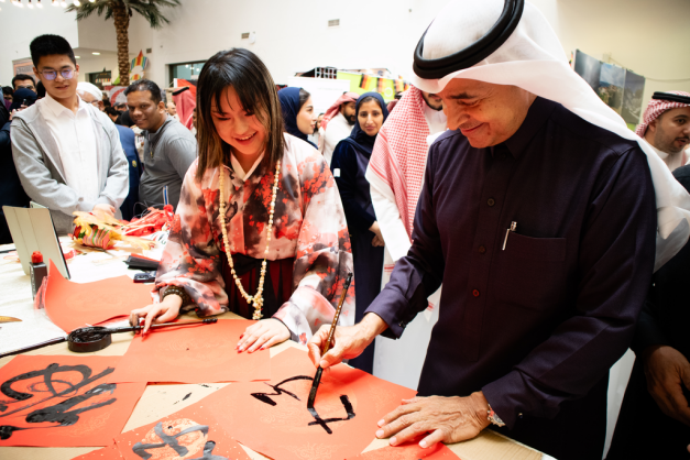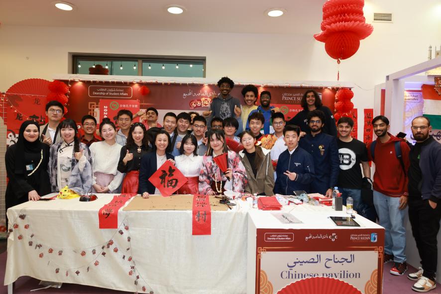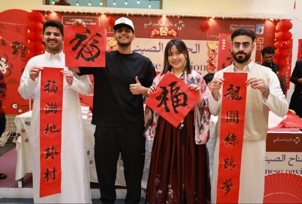 AG(中国)AG·官方网页版网2月7日电 1月29日,“清探沙特”支队在沙特阿拉伯苏尔坦亲王大学开展庆祝春节文化活动。活动开始前,支队同学们与苏尔坦亲王大学孔子学院的老师们精心布置了摊位,红色的灯笼,喜庆的春联,“龙”字背景板营造了浓厚的春节氛围。同学们通过写福字、舞龙、毛笔字教学、二胡、快板表演等形式与当地师生共庆中国春节、展示中国传统文化,活动吸引超过500人参与。