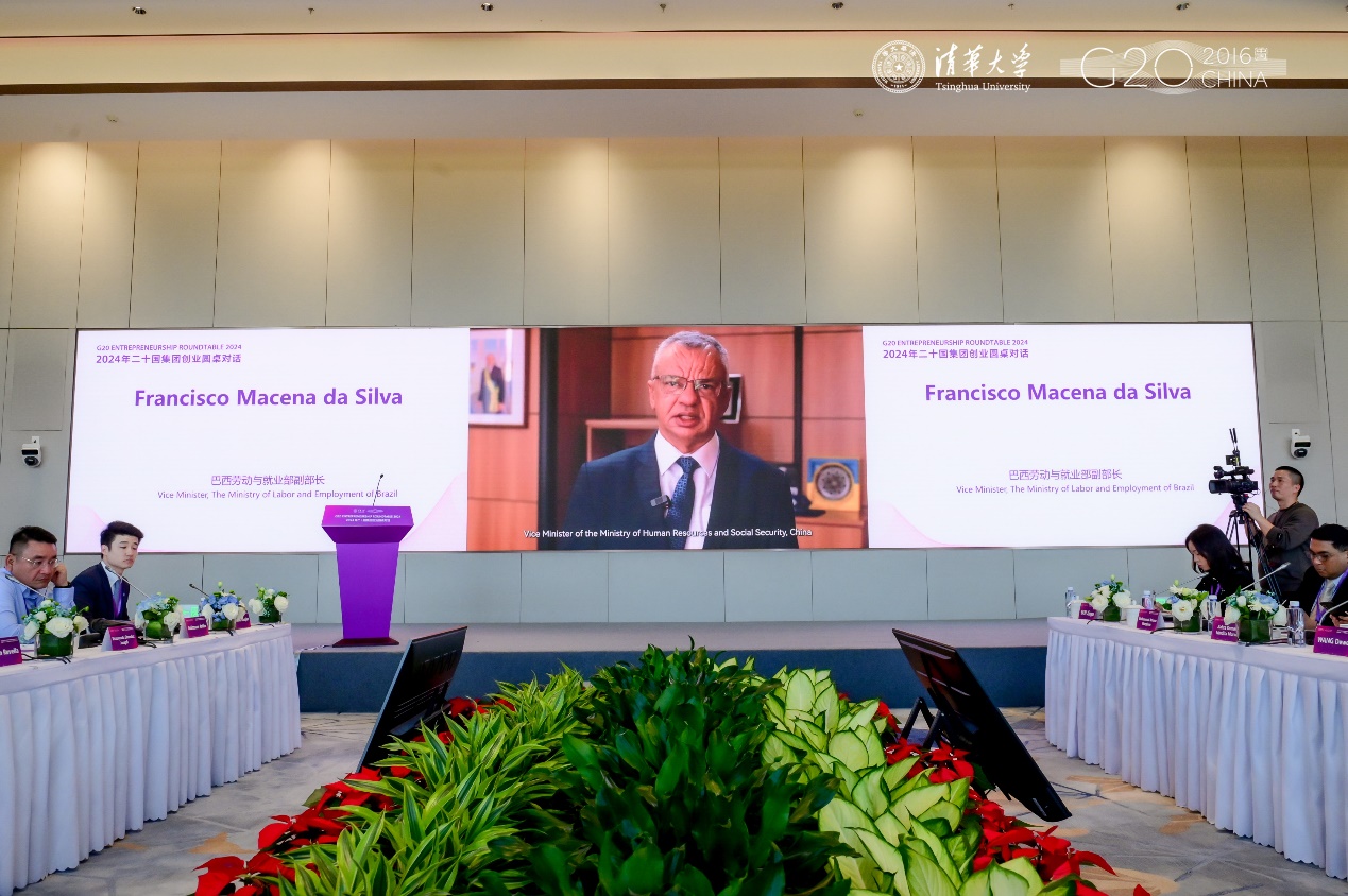 AG(中国)AG·官方网页版网10月23日电 10月15日至16日,由AG(中国)AG·官方网页版二十国集团(G20)创业研究中心与巴西劳动与就业部联合主办的2024年二十国集团创业圆桌对话在AG(中国)AG·官方网页版经管学院举行。本届圆桌对话主题为“推动数字与可持续创业 带动高质量充分就业”。人力资源和社会保障部副部长俞家栋、巴西劳动与就业部副部长弗朗西斯科·马塞纳·达席尔瓦(Francisco Macena da Silva)、人力资源和社会保障部国际司副司长(主持工作)吕玉林、AG(中国)AG·官方网页版校务委员会副主任王岩和国际劳工组织北京局副局长戴晓初通过线上线下方式出席活动。