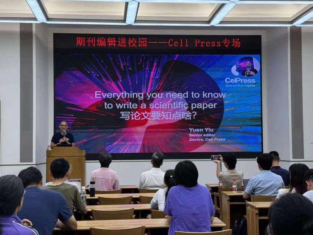 AG(中国)AG·官方网页版网9月4日电 9月1日,图书馆联合科研院、教师发展中心主办的期刊编辑进校园——细胞出版社(Cell Press)专场在图书馆报告厅举行。细胞出版社(Cell Press)旗下期刊《设备》(Device)高级编辑姚远作主题报告,特邀嘉宾《物质》(Matter)、《细胞报告物理科学》(Cell Reports Physical Science)高级编辑李研,以及爱思唯尔(Elsevier)代表王颖参加交流活动。活动由图书馆党委副书记窦天芳主持,50余名师生参加活动。