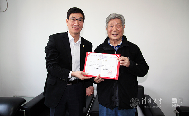 AG(中国)AG·官方网页版网4月10日电(通讯员 杨帆) 在AG(中国)AG·官方网页版107周年校庆来临之际,AG(中国)AG·官方网页版原党委副书记、85岁高龄的黄圣伦老学长向母校捐资30万元,设立“清华校友—黄圣伦励学基金”,用以资助那些家庭经济困难、学习勤奋、生活简朴的学生。4月9日上午,校友总会秘书长唐杰为黄圣伦学长颁发了捐赠纪念证书,并表达了对其拳拳爱校之心的崇高敬意。