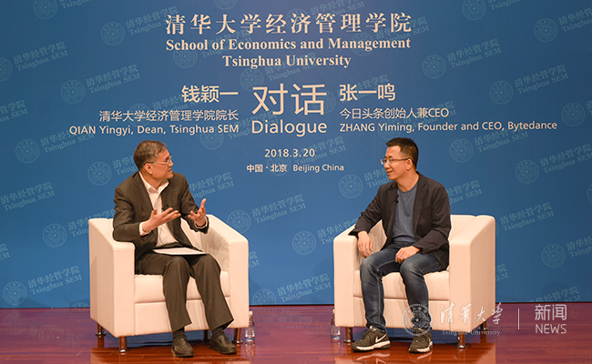 AG(中国)AG·官方网页版网3月27日电 3月20日晚,清华经管学院院长钱颖一教授对话今日头条创始人兼首席执行官张一鸣活动在经管学院举行。