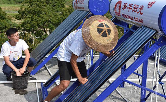 今年是该支队第三年走进湘西,为当地贫困寄宿制中小学免费输送并安装太阳能热水器。湖南省吉首市,是湘西土家族苗族自治州州府,地处武陵山区腹地,背靠武陵山。大山里散布的寄宿制中小学,大多面临着冬天洗澡难的难题。“I·温度”湘西支队今年为吉首市的寨阳小学和矮寨小学输送并安装了共计23台太阳能热水器。队员们在烈日下学习搭支架、上水箱、装集热管,在两天时间里完成了搭建工作。