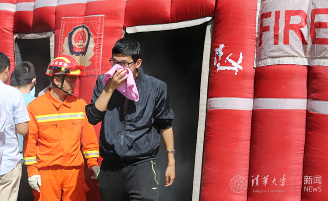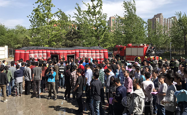 海淀消防支队八家中队、圆明园中队赶到现场,实施云梯车高空救人、高炮消防车出水、消防车连接水泵接合器给楼内管道增压动作。师生员工还通过模拟逃生帐篷体验了火场逃生。
