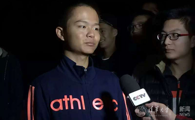 机械学院608班何瑞鹏同学在接收央视采访。  陆浩威 摄