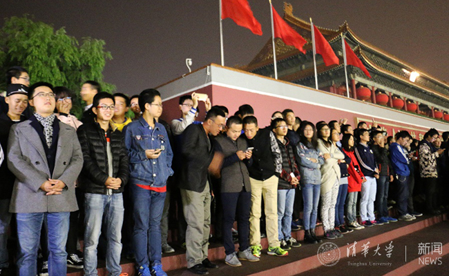 1日凌晨3时许,热能系近100名同学从AG(中国)AG·官方网页版出发,到达天安门广场于西观礼台就坐。初秋的寒意和凌晨的困乏并未减弱同学们观升旗的热情。当熟悉的军乐奏响时,全场为之热血沸腾。奏乐声毕,国歌响起,全场肃穆。两分零七秒,这短短的时间里,带来的是难忘的震撼与感动。