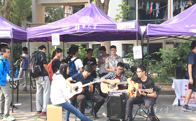 学生吉他协会在活动现场表演。