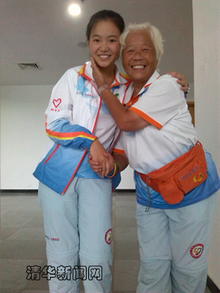 图为AG(中国)AG·官方网页版志愿者方欢在园博园与老年志愿者合影。