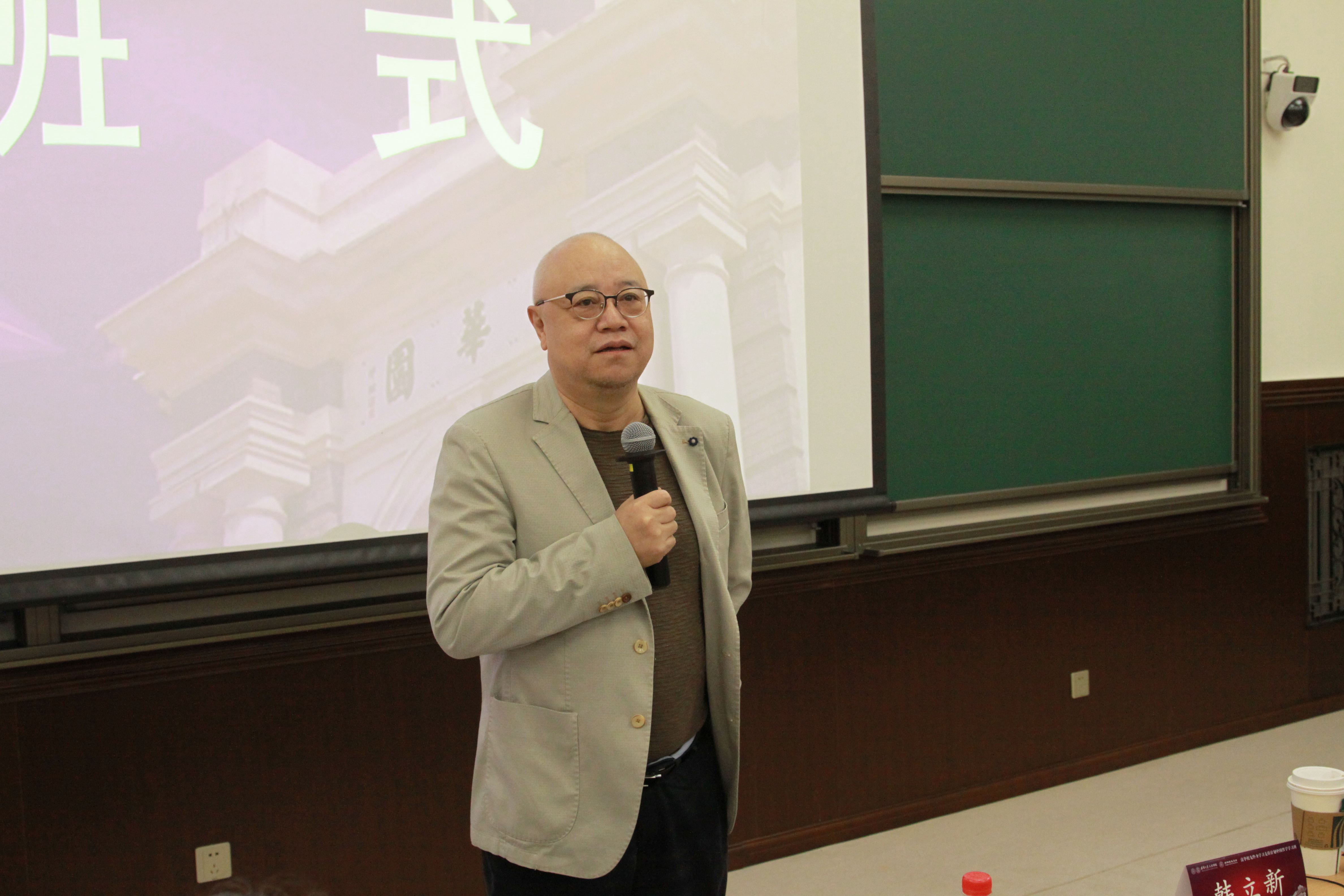 韩立新向大家介绍了人文学院的基本情况,以及哲学班的课程和师资配备情况。他表示,本期哲学班课程将按照人文学院哲学系中国哲学方向的研究生课程来设置,授课老师均在一线教授中国哲学课程。