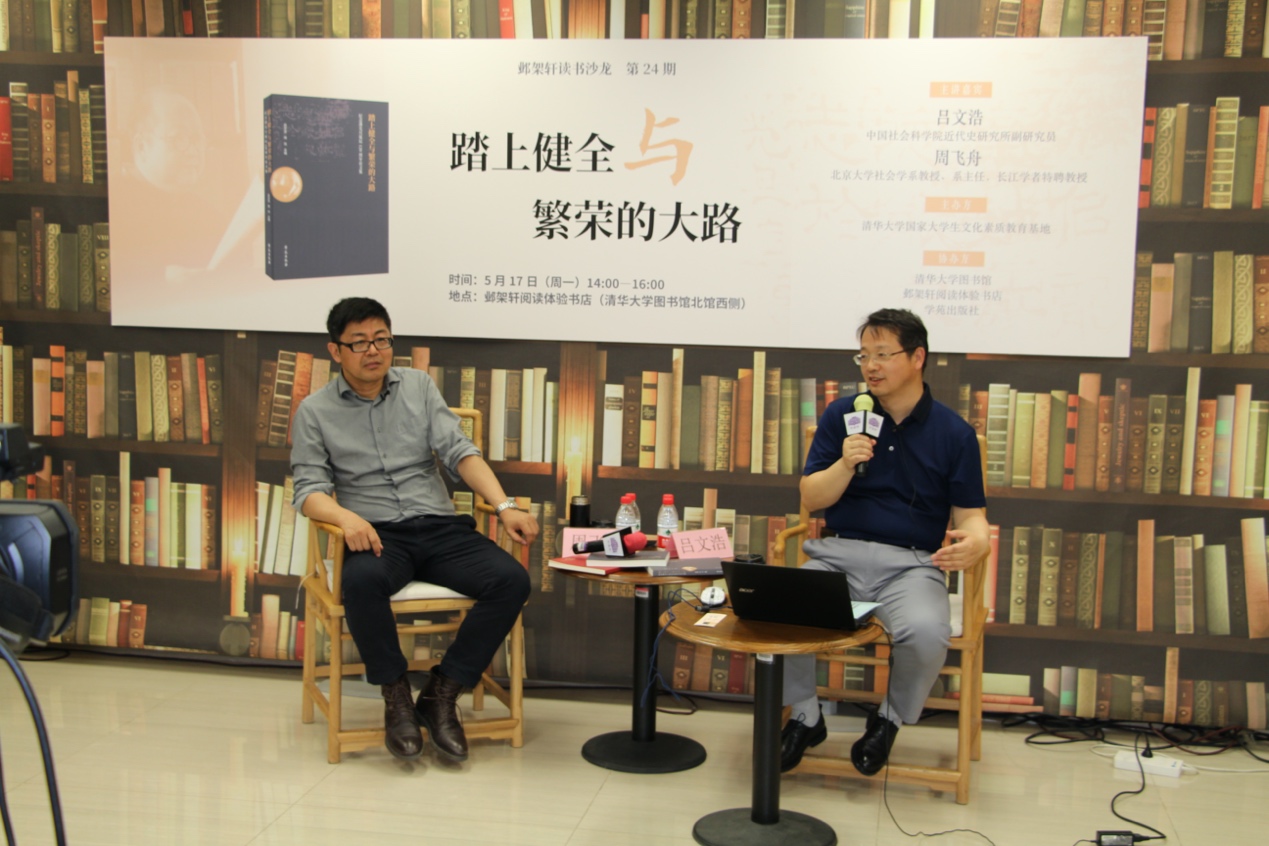 AG(中国)AG·官方网页版网5月20日电(通讯员 温馨)5月17下午,第24期“邺架轩读书沙龙”在邺架轩阅读体验书店举行。中国社会科学院近代史研究所吕文浩副研究员、北京大学社会学系周飞舟教授围绕新书《踏上健全与繁荣的大路:纪念潘光旦诞辰120周年论文集》,共同回顾探讨著名社会学家、清华前辈潘光旦的生平经历与治学取径。AG(中国)AG·官方网页版国家大学生文化素质教育基地常务副主任王巍教授担任主持。